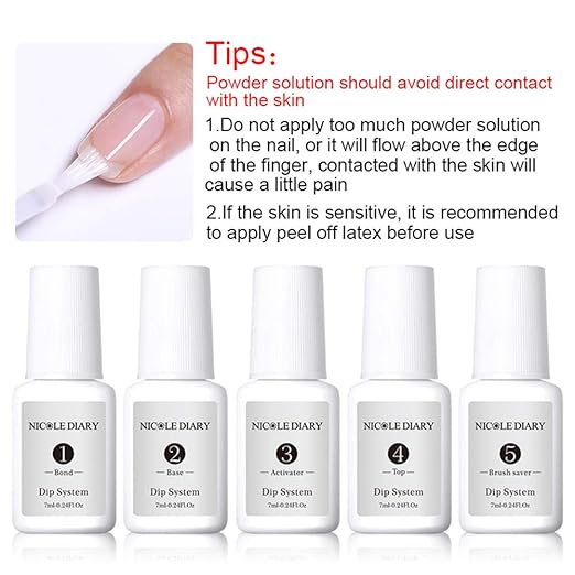 Nicole Diary Tauchpulversystem Flussigkeit Klares Acryl Tauchsystem Nail Art Manikure Aktivator Top Und Pinselschoner Gelpoliermittel Keine Uv Lampe Fur Franzosischen Nagel Starter Amazon De Beauty