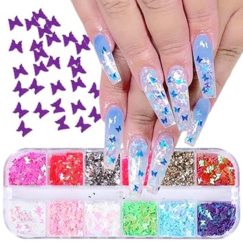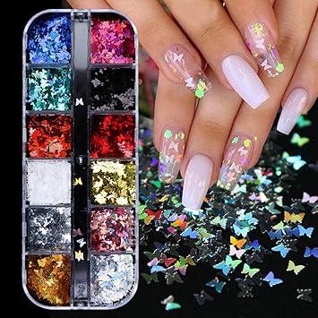 Schmetterlinge Nagel Glitzer Pailletten 12 Farbe 3d Holographic Schmetterlinge Fur Nagel Glitter Sequins Stickers Folie Nagel Zubehor Amazon De Beauty